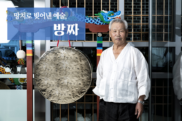 사진 제공_군포시 방짜유기전수교육관방짜 유기는 세월이 흘러도 정갈한 빛과 단아한 곡선을 품으며 은은한 멋을 유지한다. 장인의 손끝에서 탄생한 자연스러운 질감, 부딪혔을 때 오래도록 울리는 청아하고 맑은소리…. 전통 수공예, 방짜유기를 경기도 무형문화재 10호 방짜유기장 김문익과 함께 체험해 본다. 방짜유기의 매력기록에 따르면 놋쇠의 장인을 유장(鍮匠)이라 부르는데 이는 유기(鍮器) 즉 놋 제품을 다루는 장인을 가리키는 포괄적인 명칭이다. 놋은 그 재료에 따라 두 종류로 구분된다. 구리에 아연을 넣은 주동과 아연 대신 주석을 넣은 향동으로 구분되며, 향동이 더 고급 놋쇠로 방짜라는 별칭으로 불린다. 방짜유기로 만든 식기는 다양한 장점을 지닌다. 따뜻한 음식은 온기를 오래도록 유지하며, 차가운 음식은 시원함을 지속할 수 있다. 예로부터 독극물을 가려내는 효험으로 왕의 수라에서 독을 판별하기도 했으며 주동과 달리 납과 같은 소량의 불순물도 전혀 들어있지 않으며 살균 효과도 뛰어나다. 최근에는 방짜유기 식기를 사용하면 음식에 미네랄이 흡수되어 부족한 미네랄을 섭취할 수 있다는 사실이 발견되어, 건강한 식기로 주목받고 있다. 또한 징‧꽹과리 등 풍물에 쓰이는 악기들도 방짜유기로 만든다. 악기의 소리는 장인의 망치질에 따라 고유의 울림이 고르고 오래간다. 구리와 주석의 비율을 정확히 맞춘 놋쇠를 불에 달궈 망치로 두드려 만드는데, 이 과정을 거쳐 조직이 치밀하고 변색이나 변형이 적기 때문이다. _방짜유기로 만든 식기 70년 한 길을 걷다김문익 장인은 경남 함양에서 태어났다. 당시 유기 공방에 목탄을 대던 이모부를 따라다니다 12세에 유기장 최두건 공방에 입문 하였다. 함양은 유기 중에서도 악기가 유명한 곳이다. 그는 다른 지역과도 인적 교류를 많이 하는 가운데, 공방에서 13년 동안 유기 기술을 연마했다. 이후 경기 안양에서 평안도 정주 출신 중요무형문화재 제77호 이봉주 휘하에 들어가 17년 동안 평북 정주의 납청방짜 기법도 배웠다. 연마한 기법으로 1988년 서울 올림픽과 장애인 올림픽 개막 당시 춤사위에 사용되던 ‘바라’와 김덕수 사물놀이패의 악기 등을 다수 제작했다. 그 외에도 1981년부터 1999년까지 다수의 입상과 전시, 1992년 5월 28일 경기도 무형문화재 방짜유기 기능보유자로 지정되며 그 기술을 인정받았다. 김문익 장인의 방짜유기는 다른 방짜유기 보다 주석의 비율을 높여 제작해, 소리의 음역대가 정확해 악기 중에서도 단연 으뜸으로 친다. _꽹과리 – 20cm × 20cm 방짜 유기 기술방짜유기는 주물에 의한 생산이 아닌 두드려 만드는 전통적 기술이다. 10단계 모두 수작업으로 이루어기 때문에 유장의 노련함에 따라 빛을 발하게 된다. 먼저 구리16냥, 주석 4냥5돈의 비율로 합금하고 조형한 쇠인 바둑을 두들겨서 늘리고 분리한다. 이후 여러 작업을 거치며 불에 달궈 성형으로 형태를 만들고 물에 담그는 담금질로 식힌다. 이때 찬물에 일그러진 형태를 바로잡아주는 벼름질을 하고 마지막으로 겉면을 깎고 다듬는 가질의 단계를 거치면 하나의 방짜유기가 탄생한다. 전통 방짜 작업의 하이라이트는 심야에서 새벽까지 장정 6명이 하나가 되어 호흡과 리듬을 맞춰 합금과 메질을 하는 장면이다. 망치질 3명, 집게 1명, 풍구질 1명, 쇠달구는 사람 1명이 호흡을 맞추어 정신을 집중해서 쉬지 않고 최소 3시간 이상을 작업해야 한다. 김문익 장인은 지금도 방짜유기 작업에서 두드리기 작업을 할 때 잡념이 들지 않도록 가장 집중한다. 두드리는 리듬과 강약에 따라 그릇과 악기의 질이 미세하게 달라지기 때문이다. 그의 장인 정신은 마지막 망치질까지 최선을 다해 집중하는 그 세밀한 손끝에 담겨있다.전통에서 현대까지심혈을 기울인 작업 끝에 탄생한 꽹과리와 징 등의 악기는 국악인들 사이에서 최고로 통한다. 1986년 작고한 전설적인 쇠잡이 김용배 선생이 그의 꽹과리를 썼으며, 현재 우리나라를 대표하는 사물놀이패인 김덕수 사물놀이패도 그가 만든 징과 꽹과리를 이용하고 있다. 다른 악기와 소리가 다르다는 평가는 김문익 장인이 체득한 노하우와 그만의 예민한 감각에서 비롯되었다. 사물놀이용과 무속용의 소리가 다 다르다는 그는 유기장의 망치질 정도에 따라 사물놀이용은 산뜻하고 무속용은 요란한 느낌이 든다고 한다. 오랜 시간 방짜유기를 두드렸던 손끝에서 체득한 그만의 비결이다. 과거만큼은 아니지만 요즘도 유기를 찾는 곳은 꾸준하다. 주문이 들어오는 물량을 보면 불기 60%, 가정 반상기 20%, 사물놀이용 악기가 20% 정도인데 반상기의 인기가 점점 높아지고 있다. 건강한 그릇이라는 인식이 퍼지며 주목받고 있고, 혼수로 유기 반상기를 구비하는 사람들도 꽤 늘어났다. 그릇은 관리만 잘해도 다음 세대가 쓸 수 있다.장인의 기술이 전수되어야 한다는 바람은 방짜 유기의 매력에 빠진 사람들도 원하는 바다. 전통이 꾸준히 사랑받고 있으니, 경기 군포에 국일 공예사 공방을 운영하며 방짜유기 생산과 후진 양성에 힘쓰고 있다. 군포시 또한 경기도 무형문화재 제10호인 김문인 장인의 작품과 기술을 유지‧전수하고