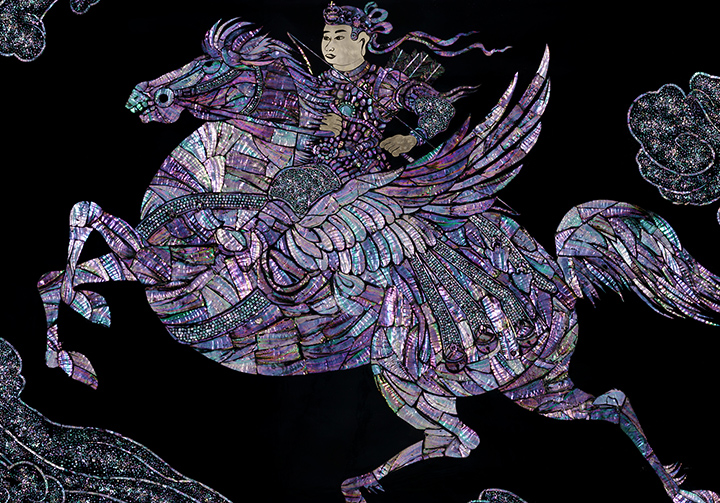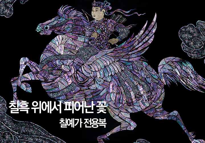 <천마도> 240x120cm, 2021, 나무 위에 옻칠, 자개 전통적인 옻칠 기법을 사용한 화폭 위에 꽃이 피고 새가 날고 바람이 불고 환한 달이 뜬다. 만남과 추억의 심상이 교차하며, 우주에서 뿜어져 나온 듯한 우아하고 찬란한 기운이 보는 이들을 압도한다. 세계적인 명품 시계 브랜드마저 탄복하여 협업을 요청한 칠예가 전용복의 작품세계 속으로 들어가본다. 자료제공 : 갤러리 라메르 참고도서 : <한국인 전용복>, 시공사 펴냄 가장 모던하고 가장 고전적인 미 검은 하늘에 오색영롱하게 빛나는 달님, 그아래로 나부끼는 갈대와 들판의 이름 모를 풀들이 시적 감흥을 불러일으킨다. 유구한 역사의 강 위로 소용돌이치는 혼불, 그 위로 흩어지는 수많은 선조들의 숨결이 영롱한 자개의 가루. 그 어떤 현대회화보다도 모던하고 그 어떤 고전작품보다도 고졸(古拙)하다.지난 12월 1일부터 19일까지 인사동 ‘갤러리 라메르’에서 열린 세계적인 거장 전용복 칠예가의 전시에서 많은 사람들은 압도적인 미의 향연 앞에 할 말을 잃었다. 어렸을 적 집안에서 흔히 보았던 구닥다리 나전칠기 장롱에 대한 고정관념은 발붙일 데가 없었다.우리 전통 칠예가 이렇게까지 깊이가 있고 품격이 높았던가. 그 칠흑의 심연에서 피어난 꽃은 누구나 한 번 보면 쉽게 잊을 수 없을 것이다. <바람 부는 날> 120x120cm, 2021, 철판 위에 옻칠 옻칠의 신비에 빠져든 청년 전용복 칠예가는 한국전쟁이 막바지에 다다를 무렵이었던 1953년 부산 복천동에서 태어났다. 군데군데 합판으로 기운 자국이 너덜너덜한 판잣집에서 찢어지게 가난한 유년 시절을 보내야 했던 그. 아버지는 항상 술에 취해 들어오셔서 집안을 난장판으로 만들었다. 동래고등학교에서 수재로 이름났던, 집안의 유일한 희망이었던 형마저 결핵성 뇌막 염으로 그가 초등학교 5학년 때 세상을 떠났다. 이후 소년가장이 된 전용복은 어머니의 약값과 동생들의 학비를 벌기 위해 닥치는 대로 일을 해야 했다.고단한 그에게 유일한 위안이 되었던 것은 미술시간이었다. 생계 때문에 비록 화가의 꿈을 단념해야 했으나 한시라도 그림에 대해 생각하지 않은 적 없었다. 그랬던 그에게 옻칠과의 운명적인 만남이 찾아왔다. 군대 제대 후 몇 군데의 직장을 전전하다 들어가게된 한국목재주식회사에서 가구회사 설립을 추진했는데, 그가 영업과 디자인을 총괄하는 책임자가 된 것. 그때부터 억눌러왔던 그의 예술적 감각과 끼가 폭발했다. <여왕> 120x120cm, 2021, 철판 위에 옻칠, 자개 그는 현란하게 나전으로 뒤덮인 당시의 디자인 트렌드를 벗어나 여백의 미를 한껏 살리며, 한국적 정서와 서양식 추상화 기법이 절묘하게 어우러진 새로운 형태의 옻칠 가구를 만들었다. 가구들은 날개 돋친 듯 팔려나 갔지만 그는 거기서 만족하지 못했다. 자신만의 예술세계를 펼치고 싶은 꿈이 간절했기 때문이었다. 결국 그는 회사를 나와 자신만의 가구공방을 운영하기 시작했다.당시만 해도 ‘카슈’라는 화학성 옻칠이 대부 분이었던 시절, 그는 우연히 우리나라 전통의 와태칠 기법과 고온경화 기법을 알게 됐고 그것을 자신이 만든 가구에 적용해가며 옻칠의 매력에 흠뻑 빠져들었다. 일본 장인들을 제치고 최고의 반열에 올라 전용복을 세계적인 대가 반열에 올려준 결정적 사건이 있으니 바로 지난 1991년 도쿄 메구로가조엔(目黑雅敍園)의 칠예 작품들을 복원하며 선풍적인 관심을 불러일으킨 일이었다. 메구로가조엔은 박물관을 방불케 하는 수많은 나전 작품을 보유한 일본의 국보급 호텔로, 건립 이래 숱한 자연재해들로 곳곳이 파손되어 무려 12조 원이 투입된 복원공사를 진행하게 됐다.그 당시 메구로가조엔 복원공사 가능성을 듣고 그는 3년 동안 일본의 장인들을 한 명씩 만나며 관련된 기술들을 습득하였다. 복원공사의 담당자 모집에 유일한 한국인이었던 그는 3,000명의 쟁쟁한 일본의 옻 장인 들을 제치고 대형 프로젝트의 담당자가 되었다. 결국 그는 5,000여 점의 칠예 작품을 성공적으로 복원시키며 일본 현지에서 ‘세계 최고의 칠예가 한국인 전용복’이라는 칭호를 받았다. 2004년에는 작가의 작품 100여 점이 전시된 ‘이와야마 칠예 미술관’을 개관하 였고, 이곳에 세계 최대 규모의 칠예 작품인 ‘이와테의 혼’을 발표하면서 다시 한 번 최고의 작가로서 이름을 높였다. <혼> 120x120cm, 철판 위에 옷칠, 자개, 2021 <봄이 오는 소리 2> 120x120cm, 2021, 철판 위에 옻칠, 자개 옻칠의 새로운 가능성을 탐구하다 그는 전통적으로 쇳가루를 넣은 까만 색상의 옻 사용에 국한되지 않고 옻에 다양한 색상을 섞어 상품과 예술품에 적용하는 등 시대에 맞는 변화를 수용해왔다. 흔히 옻칠하면 검은 색상의 자개, 나전칠기 작품만을 연상하기 쉬우나 전용복은 옻의 고유한 컬러를 살리는 기법은 물론, 옻에 천연 암채를 배합하여 다양한 색상을 연출해내는 방법으로 우리 조상의 전통 기법에 모던함을 더했다. 이로써 공예적인 성격이 강했던 옻칠을 순수 미술의 영역으로 승화시켰다는 평가를 받고 있다. 뿐만 아니라 그는 황토와 같은 새로운 소재를 개발하고 연구하여 표현 영역을 확대했다. 금속 위에 옻칠예 기법을 적