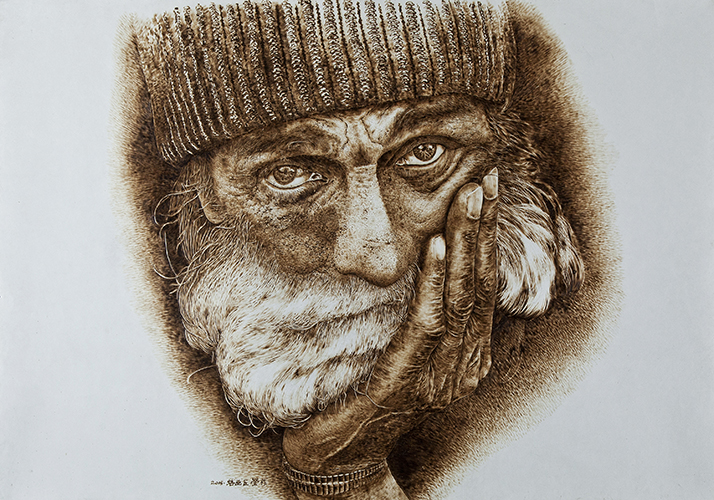 사진제공 : 충북보은전통공예체험학교, 스타벅스코리아 멀리서 보면 평범한 수묵화 같지만 가까이서 보면 뭔가 다른 느낌이다. 도구는 달랑 인두 세 개. 색깔도 하나뿐이지만 산, 바위, 초목, 호랑이 등 삼라만상을 자유자재로 표현해낸다. 은은하기도 하고 강렬하기도 하고 개성이 넘치는 낙화의 세계. 그 중심에 낙화장 김영조가 있다. 낙화 작업에 열중하고 있는 김영조 장인의 모습 5백년 역사를 가진 전통예술, 낙화 벌겋게 달궈진 인두가 종이 위를 지나간다. 때로는 천천히, 때로는 빠르게. 마치 춤추듯 막힘이 없는 낙화장의 솜씨에 따라 인두 끝에 하얀 연기가 피어나면서 종이 위에는 어느새 산, 바위, 국화, 대나무 등이 새겨진다. 이렇듯 낙화(烙畵)는 불에 달구어진 인두로 종이나 섬유, 나무, 가죽 등의 표면을 지져서 산수화, 화조화 등의 그림이나 문양 등을 표현하는 우리나라의 전통 예술이다.낙화의 역사에 대한 정확한 문헌 기록은 없다. 오래 전 중국에서 처음 건너와 서민들과 부녀자 사이에서 널리 전파되다 1820년 박창규라는 유명한 낙화장의 등장으로 크게 유행하게 된다. 하지만 박창규 명인의 작고 후밀양 박씨 가문에서만 가업으로 이어져오다가 대중과는 멀어지게 됐다.5백여 년의 역사를 지녔음에도 불구하고 오랫동안 전통예술로 인정받지 못했던 낙화를 우리나라 대표 문화재 반열에 올린 이가 있다. 지난 2018년 국가무형문화재 136호로 지정된 국내 유일의 낙화장, 김영조 장인이 바로 그 주인공이다. 김영조 장인은 20대 때 일찍 아버지를 여읜후 일자리를 찾던 중 우연히 신문에서 ‘낙화 수강생 모집, 취업도 가능’이라는 광고를 보고 낙화의 세계에 입문했다고 한다.“어렸을 때부터 상상하고 보고 그리는 걸 즐겨했어요. 저희 스승이신 전창진 선생이 인두로 종이를 지져 동양화, 산수화 등을 그리는 모습을 보고 신세계를 발견한 느낌이었죠. 낙화가 그려지는 과정을 보자마자 난 이것을 꼭 해야겠다는 생각이 들었습니다.” 하산도(夏山圖), 186cm×70cm, 전통한지 하나의 예술 장르로 인정받기까지 낙화를 익히는 과정은 결코 쉽지 않았다. 최소 20년 동안 수련해야 튼튼한 밑바탕을 마련할 수 있다고 한다.“30평 남짓한 공간에서 10개가 넘는 숯불을 피우고 그림을 그렸어요. 한여름엔 온도가 50도 넘게 올라갔죠. 인내심 없인 할 수 없는 작업인지라 40명이 넘었던 수강생은 10명으로 줄었고 결국 낙화연구소도 문을 닫았어요.”하지만 그는 낙화를 그리는 인두를 손에서 놓지 않았다. 생계를 위해 각종 관광지에서 기념품을 제작·판매하며 전통 낙화 기법을 이어왔다. 낙화를 그린 지 십수 년 뒤, 그는 잘 운영되던 기념품 가게를 정리하고 자신만의 낙화연구소를 만들어 본격적으로 낙화 작업에 몰두했다. 그의 낙화 작품은 운보 김기창 화백에게도 극찬을 받았 으나 한편으론 각종 국전, 전시회에서는 문전박대를 당하기 일쑤였다. 하나의 예술 장르로 인정을 받지 못해서였다.그는 오랫동안의 자료 수집, 학자들과의 교류 및 연구 등을 통해 낙화를 하나의 예술 장르로 인정받게 하고자 노력했다. 그 결과 2007년 전승공예대전에서 특선을 차지한 데 이어 중국 상하이, 이탈리아 아솔로 비엔날레, 태국 동아시아문화도시특별전 등 해외에서 많은 시연을 진행하며 낙화를 널리 알렸다. 마침내 2018년, 대한민국은 그를 무형문화재 136호에 지정하게 된다. 맹호도(猛虎圖), 91cm×148cm, 전통한지 담백하면서도 미묘한 낙화의 매력 낙화는 오직 한 가지 색으로만 표현된다. 인두와 불을 다루는 숙련된 손놀림과 미묘한 농담을 표현하는 기술이 낙화의 예술성을 결정짓는다. 열과 인두의 강약에 따라 색이 검어지기도 하고 갈색을 띄기도 한다.낙화는 종이 외에도 나무, 비단, 가죽 등 불에 타는 것이 라면 어느 것이든 캔버스로 활용할 수 있다. 그렇기에 낙화는 회화인 동시에 공예의 면모도 갖추고 있다. 특히 한지를 그을리면 나오는 특유의 갈색은 단조로운 듯하면서도 깊이가 있어 많은 사람들의 마음을 사로잡는다.낙화의 작업 과정은 일반 회화보다 훨씬 더 어렵다. 작품을 구상한 후 스케치하는 데까지는 여느 회화와 같다. 하지만 이후의 작업 방식은 전혀 다르다. 먼저 화로에 고품질의 참숯을 올린 후 풍로를 돌려 불을 피운다. 인두를 달구기 위해서다. 인두는 점과 선을 그릴 때 사용하는 앵무부리인두 한 개, 그리고 넓은 면을 표현할 때 쓰는 평인두 두 개가 한조이다.“낙화는 한 작품을 그리는 데도 상당히 긴 시간이 걸립니다. 대한민국전승공예대전에서 특선을 차지한 작품 <강산무진도>는 완성까지 꼬박 1년이 걸렸습니다. 이렇게 힘든 과정을 거쳐 작품을 완성했을 때의 뿌듯함은 이루 말할 수 없을 정도입니다.” 신악경림도(神岳瓊林圖), 60cm×130cm, 전통한지 끝까지 가보자는 정신으로 여기까지 낙화는 우리 전통을 유지하면서도 현대적인 감각에 얼마든지 맞출 수 있다. 예를 들어 그가 2015년 청주국제공예비엔날레에서 시연한 작품 <視(See)>는 사진인지 낙화인지 구분할 수 없을 정도의 정교함을 자랑한다. 또지난 2018년에는 스타벅스코리아와 함께 주미대한제국공사관 헌정 텀블러에 