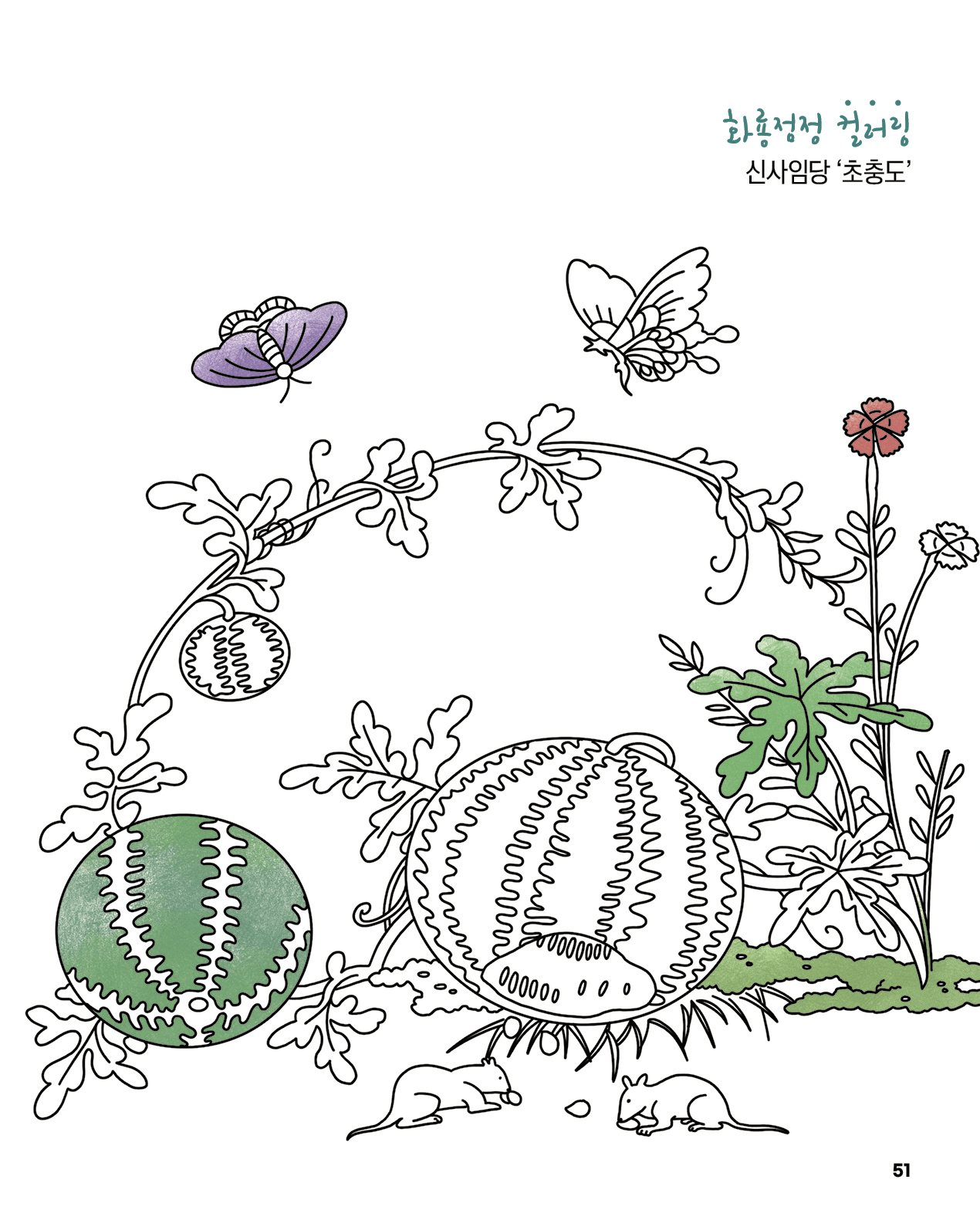 참고도서 : <예술을 사랑한 신사임당>, 레몬북스눈 여겨 보지 않으면 그냥 지나치기 쉬운 작은 동식물들을 따뜻한 시선으로 그려낸 초충도. 단순한 구도와 구성, 여성 특유의 섬세한 묘사 등은 한국 회화의 새로운 경지를 개척했다고 평가받는다. 현모양처의 틀을 넘어, 이미 당대 최고의 화가 중 한 사람으로 평가받았던 신사임당의 예술세계를 들여다보자.살아 있는 듯 생동감 넘치는 그림 세계 5만 원 지폐에 등장하는 위인으로 우리에게 친숙한 신사임당(申師任堂, 1504-1551). 대학자 율곡 이이(李珥)의 어머니이자 조선 초기의 대표적인 여류화가이기도 하다. 경전에 밝아 학문이 깊고, 시, 글씨, 그림에 모두 뛰어났으며 자수도 잘 하였다고 전해진다. 그녀가 화폭에 즐겨 담은 것은 이른바 ‘초충(草蟲, 풀과 벌레)’으로, 잠자리, 벌, 나비, 개구리, 도마뱀, 매미, 쇠똥구리, 쥐, 메뚜기 등의 동물을 비롯해 포도, 수박, 대나무, 매화 등 다양한 식물을 즐겨 그렸다. 너무나도 생동감 넘치게 그린 나머지, 마당에 내놓아 그림을 여름 볕에 말리려 하자 닭이 와서 살아 있는 풀벌레인 줄 알고 쪼아 먹으려 했다는 일화도 유명하다. 오늘날 남겨진 신사임당의 ‘초충도’는 여덟 폭의 그림과 두 폭의 발문으로 구성된 병풍으로 되어 있다. 원래는 화첩의 일부였을 것으로 추측되나, 현재는 숙종 때의 문신 정호(鄭澔)의 발문 한 폭과 민태식이 옮겨 쓴 이은상(李殷相)의 발문 한 폭이 덧붙여져 총 열 폭의 작은 병풍으로 꾸며진 것이다. 각 폭에 그려진 내용을 살펴보면, ① 오이와 메뚜기 ② 물봉선화와 쇠똥구리 ③ 수박과 들쥐 ④ 가지와 범의 땅개 ⑤ 맨드라미와 개구리 ⑥ 가선화와 풀거미 ⑦ 봉선화와 잠자리 ⑧ 원추리와 벌 등이다. 수박, 생쥐, 나비 등의 표현에서 섬세한 필선, 선명한 색채, 안정된 구도 등을 보여준다. 신사임당, ‘초충도’ 중 ‘물봉선화와 쇠똥구리’종이에 채색, 33.2×28.5cm, 국립중앙박물관신사임당, ‘초충도’ 중 ‘가지와 범의 땅개’종이에 채색, 33.2×28.5cm, 국립중앙박물관신사임당, 초충도, 전체 10폭 병풍. 20여 가지의 풀과 벌레를 소재로 그렸다.조기 영재교육을 받은 신사임당 신사임당이 젊은 시절부터 예술과 학문을 깊이 닦을 수 있었던 것은 그녀에게 깊은 영향을 준 어머니와 외할아버지 이사온(李思溫) 덕분이라 할 수 있다. 사임당의 어머니는 무남독녀로 부모의 깊은 사랑을 받으며 학문을 배웠고, 혼인한 후에도 부모와 함께 친정에서 살았기 때문에 일반 여성들이 겪는 시가살이의 정신적 고통이나 육체적 분주함이 없었다고 한다. 따라서 비교적 자유롭게, 그리고 소신껏 일상생활과 자녀교육을 병행할 수 있었다. 외할아버지로부터 학문을 배운 어머니로부터 다시 그 학문과 예술적 소양을 이어받은 사임당은, 여성의 예술 활동에 제약이 많았던 조선시대에도 불구하고 천부적 재능을 마음껏 발휘할 수 있었다. 그녀의 남편 또한 아내의 재능을 인정해주고 아내의 말에 귀를 기울여주는, 도량이 넓은 남자였다. 이러한 여러 가지 요소와 환경이 어우러져 신사임당의 예술혼이 활짝 꽃피울 수 있었던 것이다. 신사임당이 처음 산수화를 그리게 된 것은 일곱 살 때부터의 일이다. 오늘날로 치면 초등학교 들어갈 무렵부터 산수화를 그렸다는 것인데 이는 당시로도 굉장한 일이었다. 산수화를 그리려면 그림뿐만 아니라 동양문화권의 시문(詩文)도 잘 알아야 하고 옛날부터 전해져 오는 산수화의 화풍을 두루 알고 있어야 한다. 신사임당은 아마도 어릴 때부터 그러한 것들을 익숙하게 배우고 듣고 보며 자랐을 것이다. 그녀는 세종 때의 화가 안견(安堅)의 산수화를 놓고 그것을 교과서 삼아 그림 그리기를 시작했다고 한다. 조선 초기 산수화의 절정을 이룬 안견의 <몽유도원도>는 오늘날까지도 명화로 손꼽힌다. 일곱 살 난 여자 아이가 그런 안견의 그림을 놓고 그림 공부를 했다는 것은 부모들이 얼마나 자녀교육에 관심과 애정을 기울였는가를 알 수 있는 대목이다. 신사임당, ‘초충도’ 중 ‘맨드라미와 개구리’, 종이에 채색, 33.2×28.5cm, 국립중앙박물관한국적 예술의 백미를 보여준 ‘초충도’다양한 그림을 다 잘 그린 신사임당이지만, 뭐니 뭐니 해도 그녀의 대표작은 ‘초충도’이다. 부드러우면서도 깊이가 느껴지는 색감, 절묘한 필선의 벌, 나비, 잠자리, 수박, 가지 등의 그림은 보면 볼수록 빠져드는 묘한 매력이 풍겨난다. 산수화는 안견의 화풍을 따라 그렸다는 평이 많지만 초충도는 사임당의 독보적인 그림이라 할 수 있다. 그녀는 자칫 주의를 기울이지 않고 지나치기 쉬운 작은 생물들을 따스하게 보듬는 마음으로 그림을 그렸다. 들쥐는 혐오스럽다기보다 오히려 따뜻하고 귀엽게 그려냈다.비교적 단순한 구도와 구성, 여성 특유의 섬세한 묘사 등은 한국 회화의 새로운 경지를 개척했다고 평가받는다. 율곡 이이의 스승도 그녀의 그림을 보고 안견에 견줄 만큼 훌륭한 화가라고 칭송했다고 한다. 먼 훗날 숙종 임금도 신사임당의 그림에 발문을 지었다고 하니, 조선시대 최고의 여류 화가라는 명성은 이미 오래 전부터 확고했던 것 같다. 하지만 오늘날에는 이런 진취