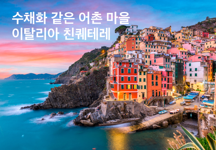 이탈리아의 친퀘테레는 흡사 ‘육지 속의 섬’이다. 깎아지른 암벽 해안을 따라 도로도 없고 철길만 있다. 절벽 위에 펼쳐진 형형색색의 조그만 집들과 골목 사이로 느긋한 여행을 떠나보자. 글·사진_ 이영철 여행작가, <세계 10대 트레일> 저자 한 달쯤 살고 싶은 유럽 마을 1위 이탈리아 지도를 놓고 보자. 북쪽 끝에 밀라노가 보이고 동쪽으로 베네치아, 조금 내려오면 피렌체가 있다. 반도의 한가운데쯤이 로마, 남쪽으로 나폴리가 보인다. 이 도시들 정도만 돌아보면 이탈리아 여행은 충분하다고 생각할 수도 있다. 이탈리아를 처음 간다면 모를까 두 번째 여행인데도 ‘친퀘테레’가 제외됐다면 후회할 일이다. 몇 년 전 대한항공이 선정한 ‘한 달쯤 살고 싶은 유럽 베스트(Best) 10’에서 1위를 차지했던 곳이다. 라틴어로 ‘친퀘(cinque)’는 ‘다섯(5)’, ‘테레(terre)’는 마을이나 지역을 뜻한다. ‘다섯 개의 마을’이란 두 개 단어가 오랜 세월이 흐르면서 고유명사로 굳어졌다. 지중해 해안선을 따라 거대 암벽 위와 아래로 크고 작은 어촌 마을 다섯 개가 그림처럼 나란히 열 지은 것이다. 가장 남쪽 마을 리오마조레를 시작으로 마나롤라, 코르닐리아, 베르나차를 거쳐 가장 북쪽의 몬테로소까지이다. 친퀘테레는 여성 부츠 모양을 닮은 이탈리아반도의 북서쪽에서 지중해에 면해 있다. 부츠맨 위쪽에 콜럼버스의 고향 제노바가 위치하고, 그 조금 아래가 사탑의 도시 피사이다. 친퀘테레는 제노바와 피사의 중간쯤이다. 험하고 가파른 산길을 지나거나 바닷길로 배를 이용해야만 이 마을로 들어올 수 있었기에, 오랜 세월 접근성이 떨어지는 산간 오지로 남을 수 있었다.Cinqueterre리오마조레 - 마나롤라 - 코르닐리아 - 베르나차 - 몬테로소아름다운 바다 전망이 보이는 절벽에 형형색색의 가옥이 있는 작은 마을에 있는 마나롤라천천히 음미해야 하는 소박한 마을 풍경이곳에선 그 옛날 터키 등 외부인들의 침입에 대비하여 험한 절벽 위에 일부러 위태롭게 집들을 지었다. 멀리 고기잡이 나가 돌아올 때 자기 집을 잘 알아보기 위하여 각기 자기만의 다른 색깔로 집들을 칠했다고도 한다. 술에 취한 어부들이 밤늦게 자기 집을 잘 찾아오도록 각기 고유의 색깔로 구분했다는 우스개도 있다. 생존과 삶의 방편으로 지어진 그 옛날 가옥들 덕에, 오늘날에는 유명 크루즈선들의 정박지가 되거나 수많은 방문객들이 몰리는 유명 여행지가 되었다. 흡사 ‘육지속의 섬’이다. 깎아지른 암벽 해안을 따라 도로도 없고 철길만 있다. 기차 외의 대중교통은 이용할 수가 없다. 마을과 마을을 잇는 해변길과 절벽길 그리고 산길을 따라 걸으며 다섯 마을을 모두 거치는 여정이 친퀘테레 트레킹이다. 총 거리 18km밖에 안 되기에 빨리 걸으면 하루에도 마칠 수는 있다. 그러나 다섯 개의 지중해 마을을 천천히 둘러보며 음미하는 게 핵심이다. 최소한 1박 2일 여정은 되는 게 좋다. 다섯 마을을 관통하는 기차가 시간당 두어 차례씩 꾸준히 이어진다. 걷다가 힘이 들면 마을 역에서 기차로 갈아탈 수도 있어 여유롭고 느긋한 트레킹 여정이 된다. 첫 번째 마을, 리오마조레(Riomaggiore) 다섯 번째 마을 몬테로소 알마레 기차역 바로 앞에 펼쳐진 해수욕장 전경역에 내리면 마을 복판과 이어지는 터널로 들어선다. 잠시 후 터널이 끝나고 리오마조레 마을이 나타나는 순간 바다 내음과 함께 벅찬 감흥이 몰아친다. 다섯 마을 중 외부와 가장 가까운 위치라서 상대적으로 더 현대적인 분위기다. 흰색 포말들이 출렁이는 에메랄드빛 바다는 지중해 해변에서 흔히 볼 수 있는 모습이지만, 그 거친 바다를 막아선 해안 절벽들이 수직으로 성채를 이룬 모습은 장관이다. 그 성채 위로 빼곡빼곡 박혀 있는 조그만 집들은 도화지 위에 형형색색 수채화를 그려 놓은 듯 이국적이다. 두 번째 마을 마나롤라(Manarola) 인근 라스페치아 항에서 여행자들을 싣고 친퀘테레 해안선을 둘러보는 페리선들남해의 가천 다랭이밭 같은 계단식 마을이다. 가파른 절벽 위에까지 촘촘히 올라앉은 가옥들이 위태로워 보이는 풍경이다. 다섯 마을 중 외부에 가장 많이 알려졌다. 친퀘테레를 알리는 엽서나 사진에 가장 많이 등장하기 때문이다. 리오마조레와 마나롤라를 잇는 구간은 ‘사랑의 길(Via Dell'Amore)’로 불린다. 연인들의 자물쇠 더미 등 아기자기한 조형물들로 꾸며져 낭만적인 길 풍경을 연출한다. 절벽 중턱을 가로지르는 완만한 오르막길이라 시원한 바람과 주변 풍광이 더더욱 정겹게 다가온다. 세 번째 마을 코르닐리아(Corniglia) 두 번째 마을 마나롤라 기차역바닷가와 인접한 다른 네 개 마을들과 달리 천혜의 요새 같은 고지대 산속 마을이다. 와인으로 유명한 마을이라 계단식 경작지와 포도밭이 마을 주위를 둘러싸고 있다. 잠시 트레킹을 멈추고 카페에 들러 와인 한 잔 마시는 건 이곳에 대한 예의다. 옛날 여기 정착해 포도를 재배하며 살았던 지주의 어머니 이름 ‘코르넬리아’에서 마을 이름이 유래됐다. 지중해 바닷가에서 트레킹하며 와이너리 여행까지 겸하는 호사를 누릴 수 있는 코스다. 네 번째 마을 베르나차(Vernazza) 다양한 색상의 건물이 모여