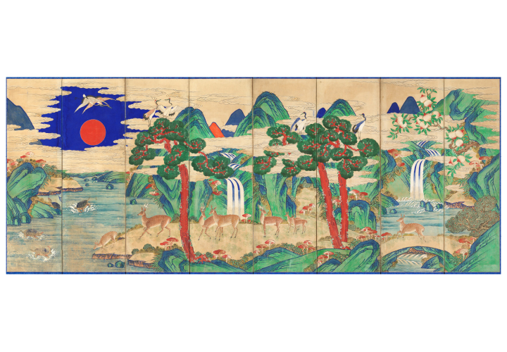 사진 제공 : 국립중앙박물관, 국립고궁박물관, 국립민속박물관십장생도 병풍, 가로 380.4cm, 세로 210.0cm, 국립고궁박물관 소장사람이 늙지 않고 죽지도 않는다는 것은 결코 이뤄질 수 없는 꿈이다. 하지만 불로불사의 낙원에 대한 꿈은 우리나라에서 수천 년간 독특한 상징과 문화로 면면히 이어져 와서, 마침내 ‘십장생도’라는 걸작을 꽃피워냈다. 세밀한 묘사, 화려한 채색 민화에서 ‘장생도(長生圖)’란 오래 살기를 염원하는 그림으로, 장수를 상징하는 물상들을 그려넣은 것을 말한다. 장생도에는 십장생도(十長生圖), 노송도(老松圖), 괴석도(怪石圖)등이 있지만 그중에서도 십장생도가 가장 대표적이다. 십장생은 예로부터 불로장생의 상징인 열 가지 사물을 말하는데, 십장생도 그림을 자세히 보면 알 수 있겠지만 실제로는 열 가지를 넘는 경우가 많다. 십장생에는 해, 달, 구름, 물, 돌, 소나무, 대나무, 불로초, 거북, 학, 사슴, 천도복숭아, 영지버섯 등이 있다. 이들 장생물은 한국인의 토속 자연물 숭배 사상을 기반으로 중국의 신선사상(神仙思想)을 수용하여 이루어졌다. 즉, 천신(天神)·일월신(日月神)·산악신(山岳神) 등의 무속 신앙에 학, 불로초, 천도복숭아, 대나무 등으로 대표되는 신선 사상이 결합하여 성립한 것이다. 그리고 이 열 가지의 장생물을 한 화면에 다 들어가게 배치한 그림을 구상한 것은 중국이나 일본에 없는 한국 고유의 착안이라는 점에서 우리 선조들의 창의성을 엿볼 수 있다. 십장생도는 혼례, 회갑잔치 등 주로 큰 행사에 사용하기 위해 키가 큰 병풍으로 꾸며졌다. 세밀하게 묘사하고 화려하게 채색하여 품격이 높다는 점이 특징이다. 정초에 왕이 중신들에게 십장생도를 새해 선물로 내렸다고 하는 문헌기록에서도 알 수 있듯이, 십장생도는 주로 상류계층의 세화와, 오래 살기를 기원하는 그림으로 제작되었다고 볼 수 있다.이건희 컬렉션 십장생도 10폭 병풍, 가로 370.7cm, 세로 151.0cm, 국립중앙박물관 소장기념우표나 NFT로 발행되기도십장생도는 당대 최고의 화가들이었던 궁중의 도화서 화원들이 그렸기 때문에 대부분 그림들이 명작이지만 그중에서도 삼성그룹의 고(故) 이건희 회장이 국립중앙박물관에 기증한 십장생도가 가장 눈에 띈다. 그림을 한번 자세히 들여다보자. 산 위로 붉은 태양이 떠오르고, 하늘에는 구름이 있다. 청록으로 빛나는 바위 사이로 폭포가 쏟아지고 소나무 아래에는 불로초인 영지버섯이 자라난다. 소나무에 학이 날아들고, 사슴은 오솔길을 누빈다. 거북은 신령한 기운을 토해내고 있다. 가득 열린 복숭아는 이곳이 신선 세계임을 알려준다. 누구나 꿈꾸지만 쉽게 도달할 수 없는 불로장생의 무릉도원. 과거 우리 선조들은 이러한 십장생도를 보면서 지친 마음을 달래고 오래도록 건강하게 살기를 꿈꾸었을 것이다. 지난해 3월, 우정사업본부는 고(故) 이건희 회장이 기증한 십장생도 작품을 소재로 한 기념우표를 발행했다. 또한 국립중앙박물관에 소장된 이 작품과 별개로, 고(故) 이건희 회장의 컬렉션이었던 다른 십장생도 작품은 대체 불가능 토큰(NFT, Non Fungible Token)으로 발행되어 경매에 나옴으로써 세간의 이목을 끌기도 했다. 도교의 낙원과도 연관이 깊어십장생의 개념은 중국의 도교와 관계있는 고구려 벽화에도 나올 만큼 그 유래가 오래되었다. 십장생도가 표방하는 낙원, 곧 선계(仙界)는 구체적으로 삼신산(三神山)과 관련이 있는데, 삼신산은 봉래(蓬萊), 방장(方丈), 영주(瀛州)라고 부르는 도교의 낙원이다. <사기(史記)> 『봉선서(封禪書』에 따르면 “이 삼신산이라는 곳은 전하는 말에 의하면, 발해(渤海) 한가운데 있는데, 속세에서 그리 멀지 않다. 여러 신선들과 불사약이 모두 거기에 있고, 모든 사물과 짐승들이 다 희며, 황금과 은으로 궁궐을 지었다고 한다. 멀리서 바라보면 마치 구름과 같은데 막상 도착해보면 삼신산은 도리어 물 아래에 있다.”고 전한다. 십장생도는 고려 말부터 본격적으로 유행하여 조선시대 초기에는 동경(銅鏡, 구리로 만든 거울) 등에 나타나고, 중기 이후에는 병풍에서부터 벽화, 자수, 도자기, 목공예품, 나전 공예품, 벼루 등에 넓게 분포되어 나타났다. 국가의 안녕과 개인의 복을 기원한 그림그렇다면 십장생 각각의 소재가 내포하는 의미는 무엇일까. 먼저 태양은 지상 최고 권력의 상징이며 모든 빛의 근원으로서, 동양철학에서 남성 원리인 양(陽)의 구체적인 본질이다. 구름은 비와 바람과 더불어 자연의 순조로운 조화와 농경사회의 풍요로운 힘을 상징한다. 산은 앞에서도 언급했듯이 한국의 무속신앙과 관련이 있다. 조선시대에는 오악(五岳)을 정하고 이에 신격을 부여하여 국가를 수호하는 신으로 받드는 의식을 치르기도 했다. 즉, 산은 국가에 안녕을 가져다주고 개인에게는 화를 물리치고 복을 부르는 신으로서의 의미가 있는 것이다. 물은 맑음, 깨끗함, 변화, 순리, 너그러움 등 다양한 상징성을 내포한다. 소나무는 대나무와 함께 절개 또는 지조의 상징으로 삼았다. 학은 신선의 탈것으로, 자태가 청초하고 고귀하여 신성한 새로 여겨졌다. 거북은 일단 수명이 길고 물과 육지에서 동시에