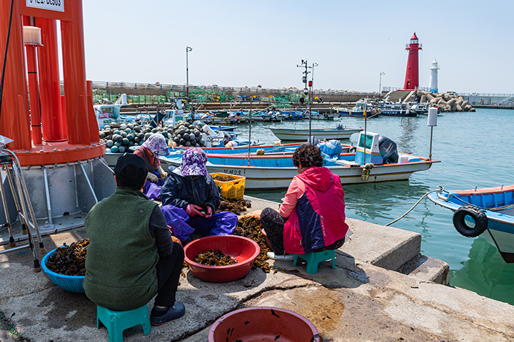 번화한 해운대 신도시, 지하철 장산역 7번 출구 방향으로 나와 고개를 하나 넘으면 전혀 다른 분위기의 한적한 어촌이 펼쳐진다. 빨간 등대와 하얀 등대가 마주보고 있는 자그마한 포구. 통통배는 하얀 포물선을 그리며 바다를 가로지르고, 마을 아낙네들은 갓 건져올린 미역을 손질하고 있다. 여기가 부산이 맞나 싶지만, 부산이 맞다.