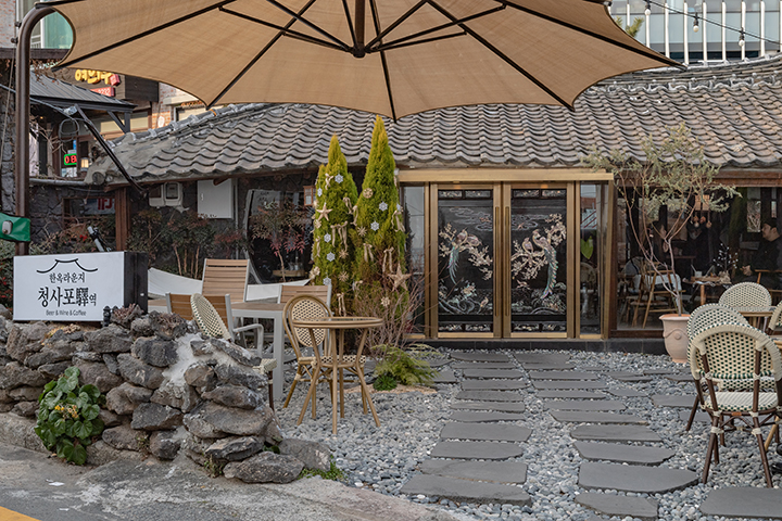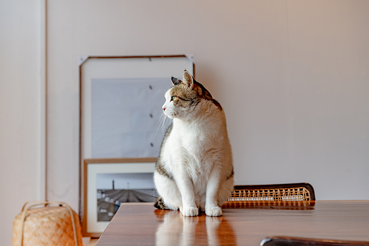 한옥카페 ‘청사포역’의 계산대 위에는 길고양이 ‘한 옥이’가 주문한 음료가 제대로 나왔는지 감시한다.