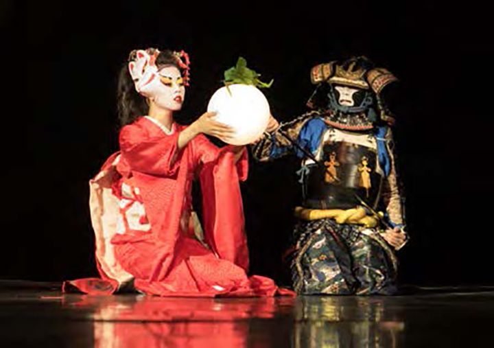 가부키는 ‘춤을 추다, 기발한 옷차림을 하다’라는 뜻의 ‘가부쿠(かぶく)’에서 비롯되었다. 에도시대 초기 매우 화려하거나 특이한 의상을 입는 것이 유행했는데, 이런 사람을 ‘가부키모노’라 불렀다. 무녀인 이즈모노 오쿠니는 당시 유행하던 노래에 가부키모노의 복장과 무용을 결합해 새로운 형식의 예술인 가부키를 만들었다.