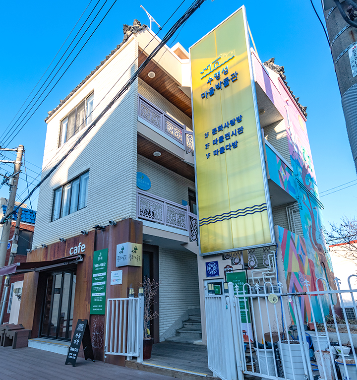 수영역 2번 출구에서 10분 정도 걸어가면 환한 색상의 간판과 벽화로 맞이하는 수영성마을박물관이 있다. 수영성마을박물관은 본래 좌수영성 북문이 있던 자리로, 2015~2017년 진행된 수영성문화마을 사업의 일환으로 다세대주택을 개조해 만들었다.