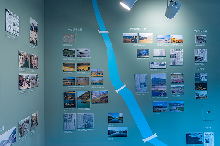 2층 전시관에서는 수영동 역사와 주민 생활사, 현재까지 이어지고 있는 주민들의 여러 활동에 대한 자료를 해설사의 설명과 함께 살펴볼 수 있다. 수영의 역사를 한눈에 파악할 수 있는 ‘수영에 서다’, 수영야류 등 문화재 및 마을 영상을 보여주는 ‘수영을 보다’, 안녕을 기원하며 소망을 직접 걸어볼 수 있는 ‘수영에 무탈하다’로 구성되어 있다. 전시관 안에는 가족 사진, 부채, 소쿠리 등 주민들의 소박한 생활과 수영에 대한 애정이 느껴지는 콘텐츠로 가득하다.