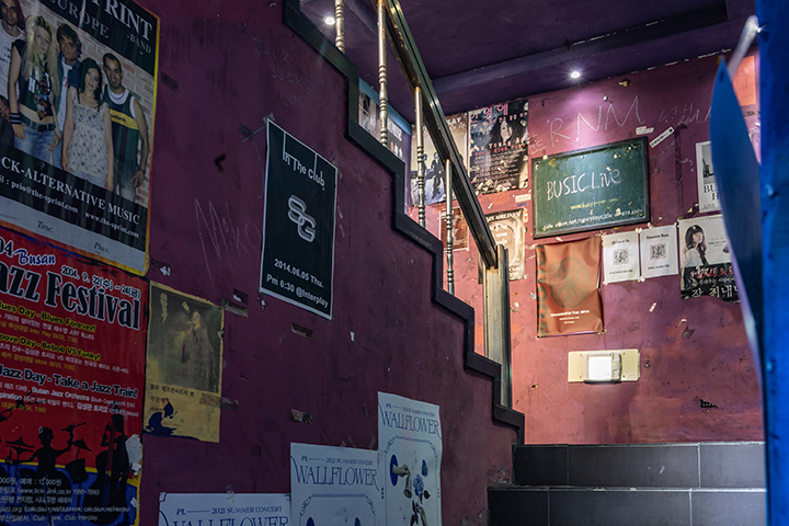 인터플레이클럽은 부산대 부근 대로변에 위치해 찾기 어렵지 않다. 계단을 따라 지하로 내려가다 보면 이곳에서 공연했던 한영애, 크라잉넛, 옥상달빛, 재주소년 등의 공연 포스터를 볼 수 있는데, 오랜 시간 운영해온 클럽 역사를 한눈에 느낄 수 있다.