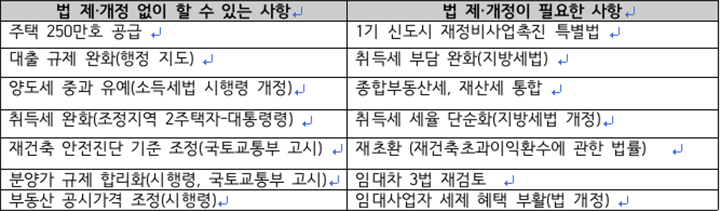 윤석열 대통령은 주택 공급을 늘리고 규제를 풀어 시장 기능을 살리겠다고 공약하고 당선됐다. 전임 문재인 정부가 서민의 주거 안정과 부동산 투기 억제를 하겠다고 부동산 대책을 쏟아 냈지만 집값이 폭등하고 세금 부담에 대한 불만이 커지면서 정권 교체의 요인이 되었다.