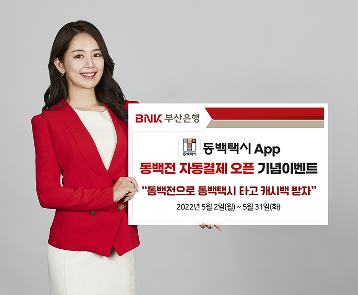 부산은행은 5월 2일 ‘동백택시 자동결제 오픈’을 기념해 동백택시 이용 금액 캐시백 이벤트를 시행했다. 이번 이벤트는 5월 31일까지 동백택시 앱(App)에서 택시 호출 후 자동 결제한 고객을 대상으로 실시한다.