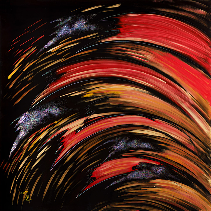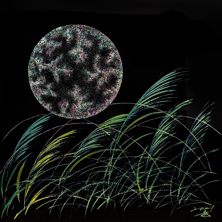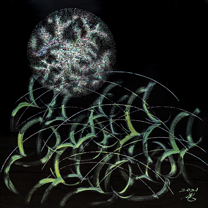 검은 하늘에 오색영롱하게 빛나는 달님, 그아래로 나부끼는 갈대와 들판의 이름 모를 풀들이 시적 감흥을 불러일으킨다. 유구한 역사의 강 위로 소용돌이치는 혼불, 그 위로 흩어지는 수많은 선조들의 숨결이 영롱한 자개의 가루. 그 어떤 현대회화보다도 모던하고 그 어떤 고전작품보다도 고졸(古拙)하다.