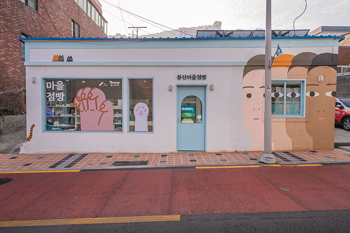 대로를 따라 쭉 가다가 언덕으로 난 산복도로로 빠지면 나오는 봉산마을. 언덕위로 빼곡히 들어선 집들 너머로 선박용 크레인과 바다가 보이는 이곳은 ‘빈집 줄게 살러 올래’ 프로젝트로 새롭게 탈바 꿈한 곳이다. 조선업 쇠퇴로 마을 사람들이 떠난 빈집에 마을 감성을 잘 살린 가게들이 입주했다.