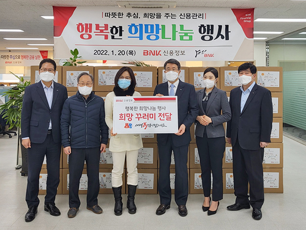 BNK신용정보는 1월 20일 설 명절을 맞아 범일동 본사에서 임직원들과 함께 ‘행복한 희망 나눔 행사’를 실시했다. BNK신용정보의 ‘행복한 희망나눔 행사’는 기업의 나눔 경영 실천과 지역 나눔 문화 확산을 위해 2016년부터 매년 명절마다 진행하고 있는 ESG 활동으로, 이날 행사에서 BNK신용정보 임직원들은 생필품과 식료품 등 15종으로 구성된 ‘희망나눔 꾸러미’ 50상자를 직접 만들어 어려운 가정환경에서도 채무를 성실히 상환하고 있는 고객의 가정에 전달했다.