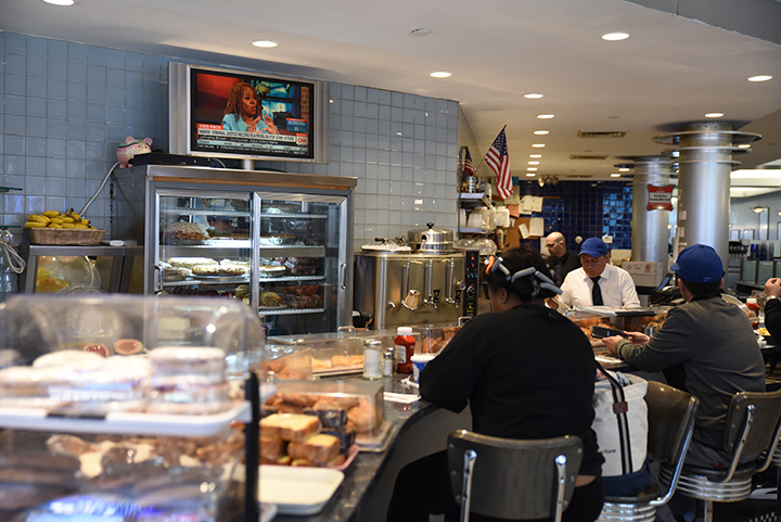 뉴욕 맨해튼의 직장인들이 아침 식사를 즐기는 베이글 카페