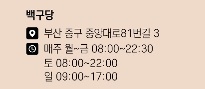 마지막으로 조 대표에게 분점 계획을 물었다. 유명한 백구당이지만 그는 새로운 지점을 낼 계획은 없다고 했다. 지금처럼 중앙동 이 자리에서 전통과 맛이 가득한 빵을 내놓을 생각이다. 빵에 대한 철학을 열심히 설명하는 그에게서 장인정신이 느껴졌다. 백구당이 지금까지 그랬던 것처럼 앞으로도 고객들의 사랑을 받으며 성장하길 기원한다.