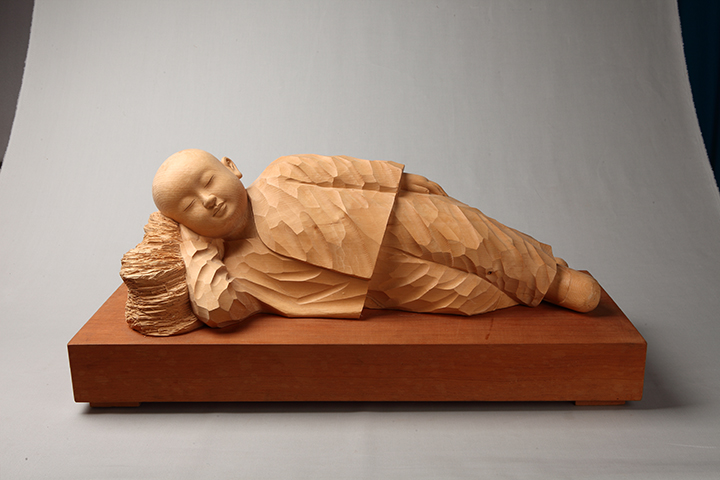 목조각은 나무를 재료로 조각상을 만드는 일이다. 우리나라는 삼국시대 불교가 들어오면서 불상 목조각이 발달하였다. 박찬수 장인은 목조각의 가장 중요한 부분을 ‘나무를 잘 아는 것’이라 한다. 그는 끊임없이 나무의 속성과 근본을 탐구한다. 곧은 나무, 휘어진 나무, 살아 있는 나무, 죽은 나무. 60년이 넘는 세월 나무를 보아왔지만, 나무가 보여주는 모양과 느낌은 항상 새롭게 그를 작품으로 이끈다. 그의 마음을 처음으로 흔들어 놓은 목조각은 우리나라 불교 목조각으로 일본으로 건너가 국보로 지정된 목조 미륵보살 반가 사유상. 얼굴에서 내려오는 결은 마치 핏기가 도는 것 같고, 팔과 다리에 그대로 결이 내려오는 모습이 여인이 살아서 다가오는 것 같은 느낌을 받았다. 그렇게 나무의 결을 살리는 것, 그의 작업에 있어 가장 중요한 심장이 되었다.