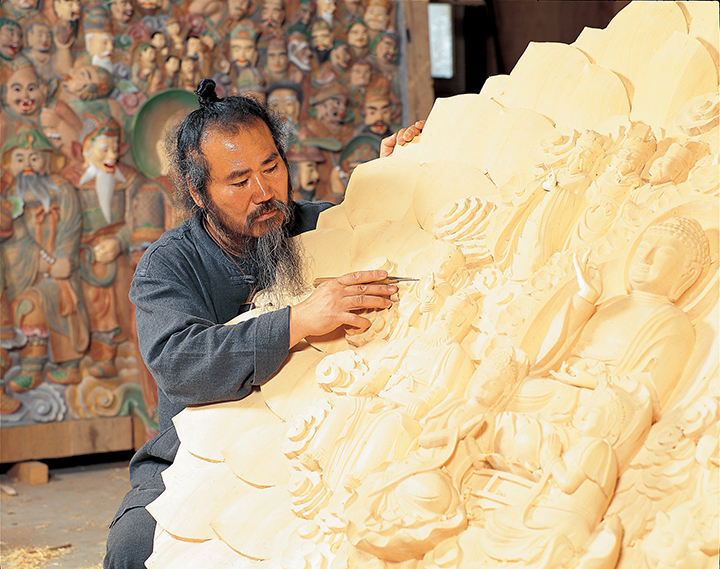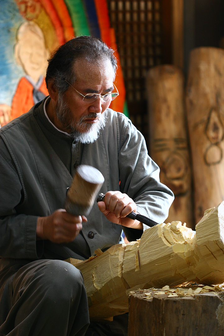 UN 본부에서 선보인 목조각 퍼포먼스 공연은 세계적인 화제를 모으며 유네스코 세계문화 유산 등재를 위한 발판을 마련했다. 그의 퍼포먼스를 본 전문가는 ‘자기가 만족할 수 있는 것을 스스로 개발하면서 시대의 흐름을 인식하고 예술성으로 승화시키는 좋은 장인이자 작가’라 했다. 현대 조각가의 작품처럼 느껴지는 그의 퍼포먼스는 힘과 에너지가 넘쳐흐른다.