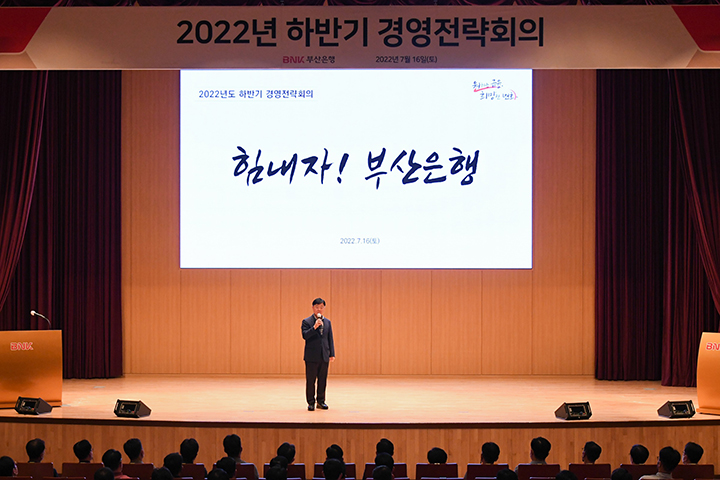 부산은행은 7월 16일 본점에서 경영진과 부실점장 270여명이 참석한 가운데 ‘2022년 하반기 경영전략회의’를 개최했다.