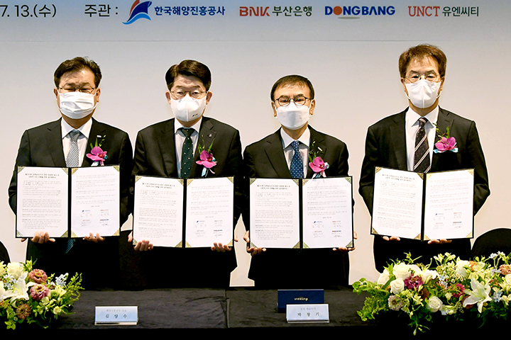 부산은행과 한국해양진흥공사가 해운물류산업 경쟁력 확보와 민간주도의 투자활성화 및 스마트항만 구축을 지원하기 위해 7월 13일 울산신항 컨테이너터미널에서 ‘울산신항 민간투자시설사업 안정적 운영을 위한 다자간 업무협약’을 체결했다. 울산신항 컨테이너터미널은 2021년에 314,000TEU의 컨테이너 물동량을 처리한 울산을 대표하는 컨테이너항만으로, 울산신항 영업경쟁력 강화를 위해 부산은행과 한국해양진흥공사가 공동으로 금융지원을 실시하기로 했다. 부산은행은 현재 국내 부동산·SOC·출투자 중심의 IB사업에서 국내외 항만 인프라사업으로 투자금융본부 내 해양투자금융부의 업무영역을 확대하고 있다.