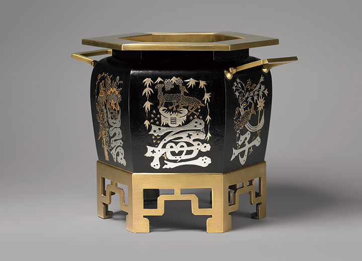 _홍정실, <철제금은입사문자문향로> - 20.7 × 19.5 × 19.5 cm - 순금, 청금, 순은, 황동, 철, 옻칠, 입사기법