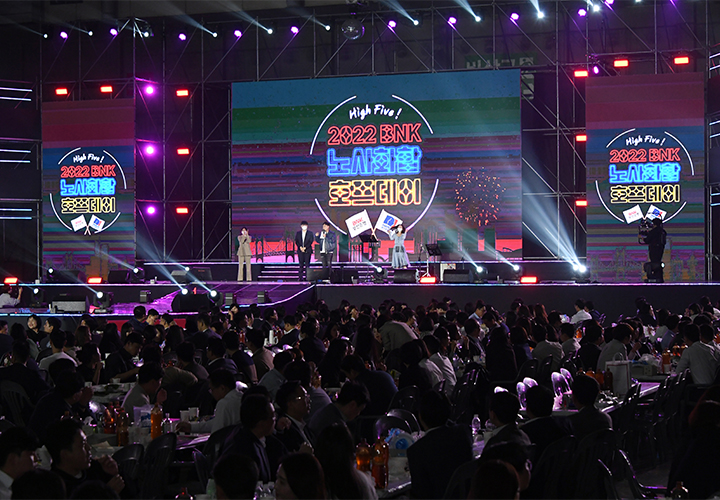 가을밤의 소중한 추억을 함께 만드는 소통과 화합의 장인 '2022 BNK 노사화합 호프데이'가 개최되었다. 코로나의 긴 터널을 지나 3년 만에 열린 행사엔 내내 웃음과 환호성으로 가득 찼으며 모든 임직원들이 부산은행의 한 가족이라는 끈끈한 연대의식을 다지는 계기가 되었다.