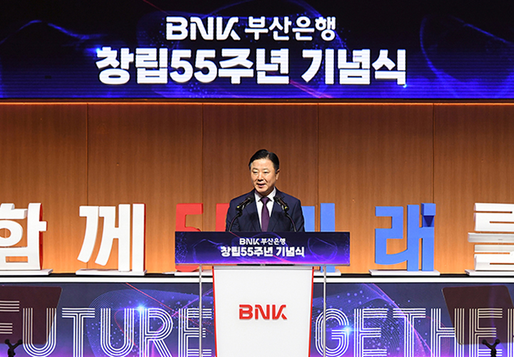 부산은행은 10월 25일 본점 대강당에서 부산은행 임직원 400여 명이 참석한 가운데 창립55주년 기념식을 개최했다. 기념식에서 부산은행은 앞으로의 55년도 지역사회와 함께하고, 미래 55년을 위한 가장 중요한 과제로 ‘2025년, 총자산 100조 원의 독보적인 중견은행’ 완성을 다짐했다.