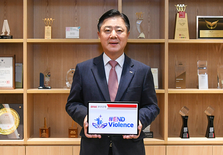 안감찬 은행장이 10월 26일 아동 폭력 근절 캠페인 ‘엔드 바이올런스’에 동참했다. ‘엔드 바이올런스’는 7월 1일부터 외교부와 유니세프가 공동으로 주도한 캠페인으로 ‘폭력을 멈추게 하는 것은 바로 우리의 관심입니다’라는 슬로건 아래 전 세계인을 대상으로 진행 중인 SNS 릴레이 챌린지이다. 이번 ‘엔드 바이올런스’는 우철문 부산경찰청장의 지목을 받아 부산은행 안감찬 은행장이 동참했으며, ESG경영의 일환으로 태블릿PC를 활용해 캠페인에 참여했다. 안감찬 은행장은 캠페인 다음 주자로 국립부산과학관 김영환 관장, 부산광역시아동복지협회 나영찬 회장을 지목했다. 한편, 부산은행은 2018년부터 가방 안전덮개와 안전옐로카드 등 어린이 교통안전을 위해 다양한 사회공헌사업을 진행 중이다. 지난해에는 어린이 교통사고 예방을 위해 강서구, 영도구, 사하구 스쿨존 세 곳에 활주로형 횡단보도와 안전문구를 담은 로고젝터를 구축했다.