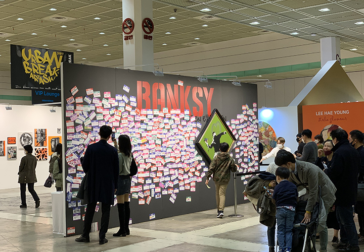 호텔에서 열리는 ‘아시아 호텔 아트페어 AHAF, Asia Hotel Art Fair’는 5성급 호텔 객실에 작품을 설치하고 관람객을 맞는다. ‘호캉스’를 떠나는 기분으로 아트페어를 둘러볼 수 있다. 호텔에서 묵을 때 한참 청소 중인 다른 객실의 구조가 궁금해서 빼꼼 들여다보고 싶은 적이 있었는데, 문이 활짝 열린 객실들을 자유롭게 드나들며 작품을 관람하는 기분이 이색적이다. 신진 작가의 작품을 소개하는 갤러리들이 다수 참여하고, 도예 작품도 다양하게 선보이고 있어서 한두 점은 꼭 고르게 된다. 2021년 6월, 파크 하얏트 부산에서 열린 AHAF는 1만 5천 명의 관람객이 방문했고 60억 원의 매출을 기록했다. 단순히 이색 장소에서 열리는 예술품 판매 행사라고 치부하기에는 상당히 고무적인 성과다. ‘어반 브레이크 아트 아시아(Urban Break Art Asia)’는 신생 아트페어지만 기존의 ‘우아미’를 집어 던지고 ‘시끄러운 아트페어’를 표방하며 MZ 세대들을 겨냥했다. 첫 페어가 열렸던 2020년에는 세계적인 스트리트 아티스트인 뱅크시의 작품이 네 점이나 설치됐고, 이듬해 7월에 열린 두 번째 페어에서는 ‘낙서 천재’라고 불리는 존 버거맨(Jon Burgerman) 특별전을 선보이며 큰 주목을 받았다. 아트페어에 참가 이력이 없는 신진 갤러리와 신진 작가를 타겟팅한 ‘더 프리뷰 한남’ 아트페어는 2021년 개최 첫해부터 엄청난 성과를 거두며 2022년 ‘더 프리뷰 성수’라는 이름으로 더 다양한 행사를 선보였다.