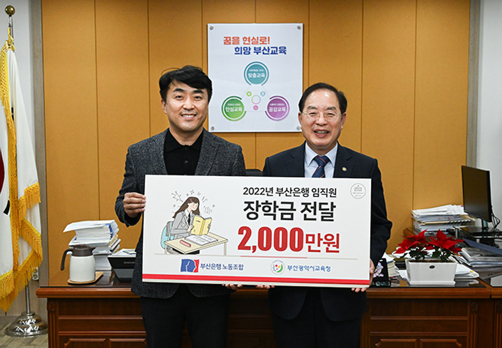 부산은행 노동조합은 12월 14일 지역 소외계층 가정의 중·고등학생을 위해 장학금 2,000만 원을 부산시교육청에 전달했다. 부산은행 임직원들의 매월 급여 중 1,000원 미만 금액을 모아 조성한 기부금으로 부산시교육청이 선정한 지역 소외계층 중·고등학생 20명에게 각 100만 원의 장학금으로 지원된다.