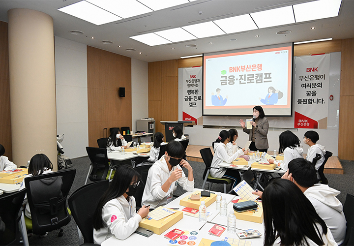 부산은행은 12월 15일부터 20일까지 4일간 ‘행복한 금융·진로체험’ 프로그램을 실시했다. ‘행복한 금융·진로캠프’는 지역 중학생의 진로 선택과 경제지식 향상을 지원하는 교육 기부형 사회공헌 사업으로, 부산시교육청에서 선발한 경제·금융에 관심이 있는 중학생 36명이 참여해 은행원 체험 및 주식, 펀드 모의투자 대회 등 최신 금융권 트렌드를 반영한 다양한 프로그램을 진행했다.
