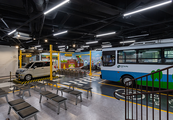 교육은 약 70분 동안의 프로그램으로 구성되어 있다. 1층 실내교육장에서는 다양한 교통수단과 자동차의 역사 등을 알 수 있는 ‘궁금해요’ 코너, 어린이 10대 교통사고 유형을 알아보고 이를 예방할 수 있는 프로그램으로 구성된 ‘위험해요’ 코너, 버스·지하철 등 대중교통을 이용할 때 안전교육과 차 내 예절 등을 배울 수 있는 ‘안전해요’ 코너 등으로 구성되어있다. 특히 ‘함께해요’ 코너는 교통안전 수칙을 게임이나 퀴즈를 통해 체득할 수 있어 아이들에게 인기 만점이다. 그중 운전시뮬레이터는 아이들이 직접 운전을 해볼 수 있어 흥미도 이끌고, 운전자 시선에서 교통상황도 볼 수 있는 일석이조의 코너이다.