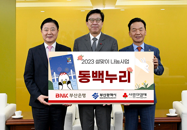 부산은행은 2008년부터 매년 명절과 연말에 전통시장 온누리상품권과 생필품 복(福)꾸러미 등을 전달하며 지역 사회를 위해 나눔을 이어가고 있으며, 현재까지 기부한 누적 지원 규모는 131억 원에 달한다. 한편, 동백전 부산관광상품권은 무기명 선불카드로 동백전 앱 설치와 회원가입 없이도 백화점·대형마트 등을 제외한 부산지역 15만 개 동백전 가맹점에서 바로 사용이 가능하다.