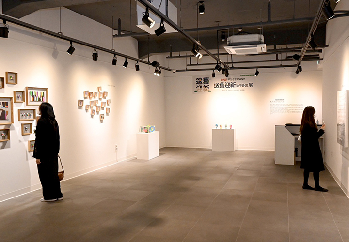 부산은행은 1월 11일부터 31일까지 부산 중구 신창동 BNK아트시네마 2층 부산은행갤러리에서 ESG업사이클링 아트 초대전시 ‘送舊迎新(송구영신)’전을 개최했다. 이번 전시는 윤현미, 임선희, 조영희, 최명지 총 4인의 작가