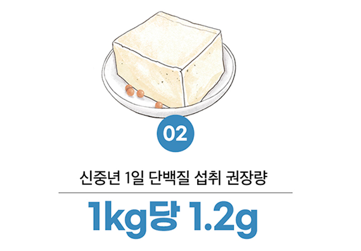 신중년 1일 단백질 섭취 권장량 1kg당 1.2g