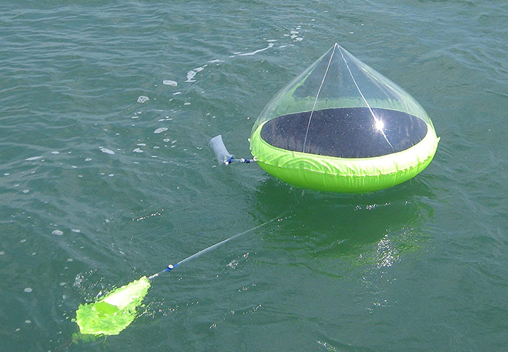 그러면 이런 기술은 현대에는 어떤 형태로 변형되어 쓰일 수 있을까요? 아쿠아메이트(Aquamate)는 보다 현대식 태양열 증류식 담수기입니다. 평소에는 공기를 빼고, 작게 접어서 구명보트 등에 보관하다가, 바다에서 식수를 구하기 어려운 상황이 왔을 때, 펼쳐서 바다에 띄워서 사용할 수 있게 되어 있습니다. 검정색 바닥의 원통에 바닷물을 넣어두면, 태양열로 증발된 물의 수증기가 투명한 고깔 안쪽에 맺히고, 그렇게 흘러내린 물방울을 모아서 마실 수 있도록 되어 있습니다. 물론 비상시가 아닌, 평소에 쓸 수 있을 만큼 많은 양의 물이 생산되지는 않겠지만, 망망대해를 표류하는 구명보트 안에서, 단기간 마시기에는 상당한 도움이 될 수도 있을 것입니다.