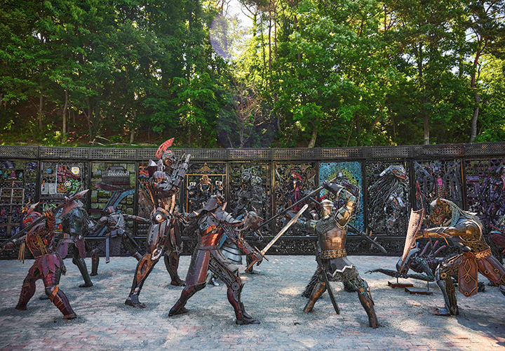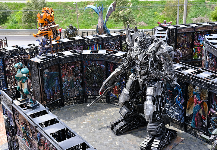 ‘철(Fe)로 만든 첫 번째(01) 재생복합문화공간’ FE01 갤러리&카페(이하 FE01)는 독특한 이름만큼 색다른 볼거리가 가득한 공간이다. 폐자동차 등 버려진 금속 부품을 재활용한 ‘정크 아트(Junk Art)’ 작품을 만날 수 있는데, 26명의 작가가 무려 4년이 넘는 기간 동안 작업한 결과물 1,140여 점이 전시되어 있다. FE01 기획자이자 작가인 김후철 대표는 15년 전부터 자신이 좋아하는 영화나 만화 캐릭터를 정크 아트 작품으로 만들기 시작했다. 그러다 자신과 같은 세대인 키덜트들은 물론이고 다른 세대들에게 새로운 것을 체험할 수 있는 공간이 있으면 좋겠다는 생각에 이곳을 꾸몄다.