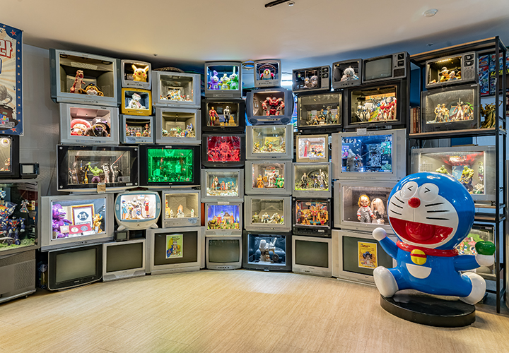 전시 공간은 촛불 영사기·유리필름 등이 전시된 1층 5개 구역과 고전 피규어, 추억의 문방구 등 3층 8개 구역으로 나뉘어 있다. 고개를 돌릴 때마다 재미있는 물건을 볼 수 있다 보니 모든 전시 물품이 방문객들이 서로 이야기를 나눌 수 있는 요소가 된다. 특히, 추억의 문방구에 있는 옛날 필통과 책받침은 옛 향수를 불러일으켜 어른들은 타임머신을 타고 과거로 돌아가게 만들고, 아이들은 처음 보는 물건들에 흥미로움을 감추지 못한다고. 한 방문객은 오랫동안 찾아 다녔던 추억의 인형을 이곳에서 발견하고는 반가운 마음에 털썩 주저앉아 버렸다고 한다. 디오라마존 한쪽 벽면은 업사이클링한 텔레비전이 채우고 있다. 이 구역은 포토존으로 인기 있을 뿐만 아니라 테마별로 비치한 피규어를 보는 재미가 쏠쏠하다.