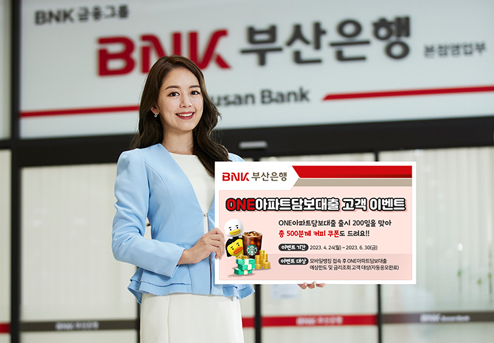 부산은행은 4월 24일 모바일뱅킹 ‘ONE아파트담보대출’ 출시 200일을 맞아 고객 감사 이벤트를 진행한다. 이번 이벤트는 ‘ONE아파트담보대출’ 대출 가능금액 및 금리를 조회한 고객을 대상으로 무작위 추첨을 통해 500명에게 모바일 커피 쿠폰을 제공한다. 모바일뱅킹 앱에서 참여 가능하고 6월 30일까지 진행한다. 2022년 9월 시행된 ‘ONE아파트담보대출’은 영업점 방문이 없이 모바일에서 신청 가능한 비대면 담보대출로, 출시 반년 만에 278건, 약 400억 원이 판매됐다.