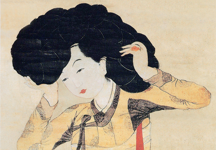 서양화에는 인물의 초상화가 흔하지만 조선에서는 인물화가 아닌 산수화가 중심이 되었다. <몽유도원도>나 <십장생도> 그 어디에도 인물은 보이지 않는다. 신윤복의 <미인도>처럼 여성의 전신을 단독으로 그린 그림은 신윤복 이전에 거의 없었다. 신윤복과 함께 풍속화의 쌍벽을 이루는 김홍도조차 미인도 같은 것은 그리지 않았다.