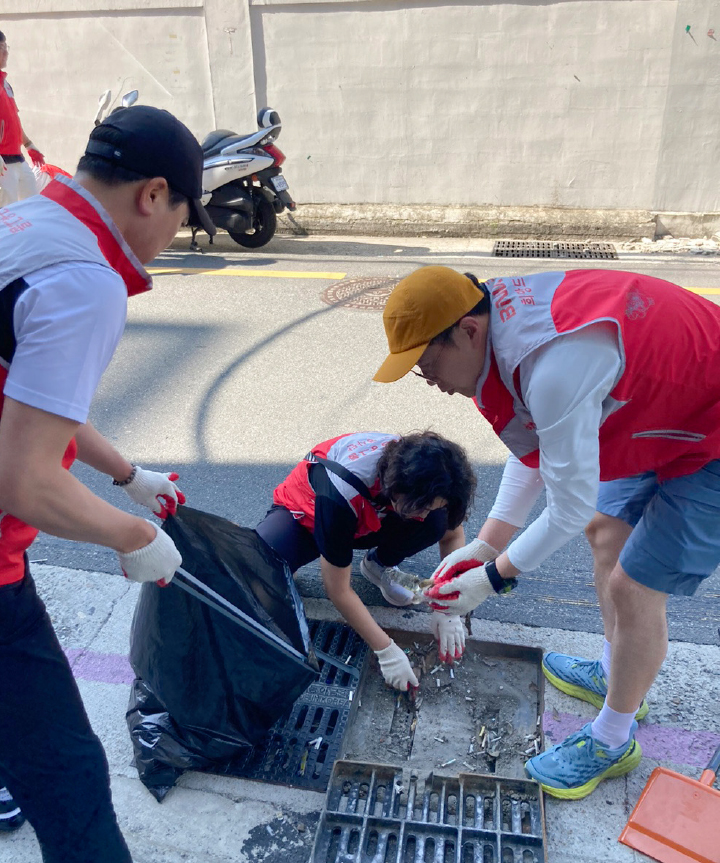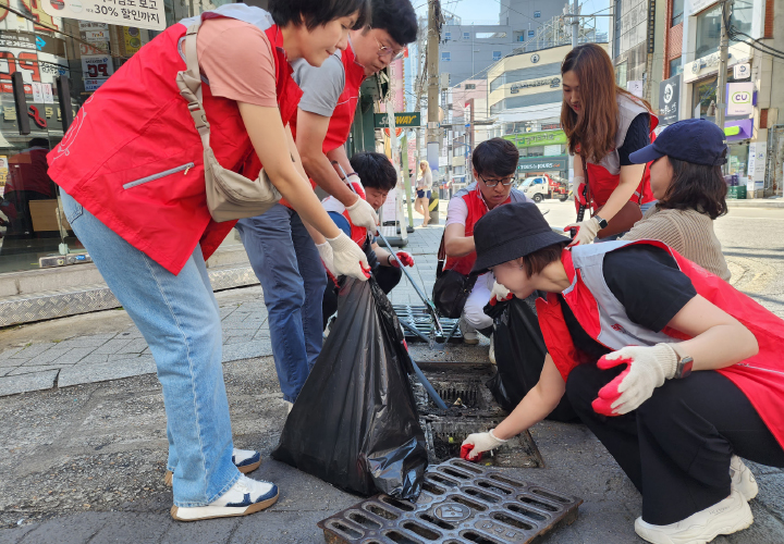 임직원들이 직접 배수로 빗물받이를 열어 안쪽에 쌓인 쓰레기, 낙엽 등 퇴적물을 수거하는 활동을 이어갔습니다. 또한 관광객 방문이 잦은 주요상권 환경 정화 활동과 수해피해 예방을 위한 물막이용 모래주머니 1,500개(무게 5kg)도 제작했으며, 모래주머니는 향후 부산광역시자원봉사센터를 통해 상습 침수지역에 설치할 예정입니다.