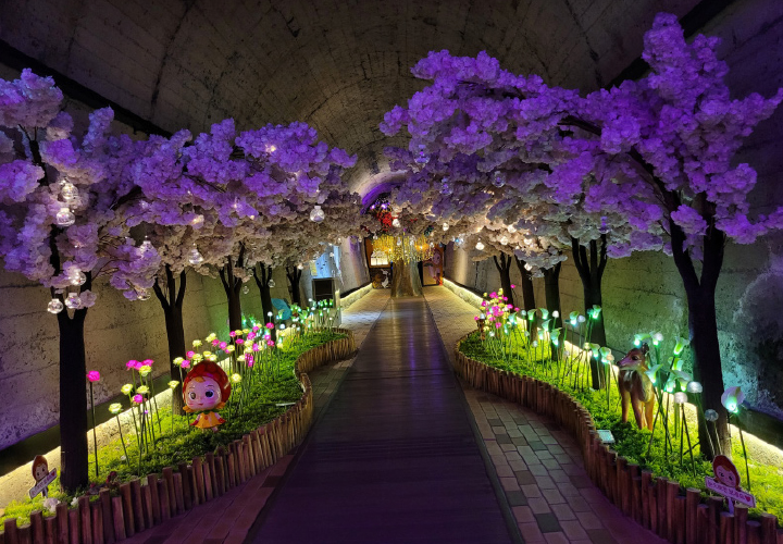 국내 최초 친환경 유기농 인증을 받은 농장에서 재배한 산딸기로 직접 만든 와인을 볼 수 있는 김해 와인동굴. 2020 부산·울산·경남지역 임업인상도 수상할 만큼 친환경 산딸기에 진심인 이곳은 온 가족이 즐길 수 있는 다채로운 체험 거리가 많다. 와인동굴은 열차카페 - 오크통 게이트 – 와인전시장 – 와인 판매장 - 베리의 산딸기 마을 - 와인정원으로 나뉘어져 있다. 테마에 따라 꾸민 다양한 공간으로 한 번 들어가면 시간 가는 줄 모르고 즐거운 경험을 할 수 있다. 거대한 오크통 게이트에서 사진을 한번 찍고 와인전시장에 들어서면 와인에 대한 설명과 전시된 와인을 볼 수 있다. 또한 와인 타임캡슐관도 이용할 수 있다. 판매대에서 와인을 구매한 후 동굴에 저장요청을 하면 빈 와인병과 편지지를 받아 그날의 이야기를 적어 빈 와인병에 넣어 코르크로 막은 뒤, 추후 원하는 날에 찾을 수 있다. 와인판매장에서는 이곳에서만 맛볼 수 있는 산딸기 스위트 와인과 드라이와인이 있으며 운전자, 학생, 어린이들을 위한 무알콜 음료도 구비되어있다. 무알콜 음료로는 산딸기 천연 발효 식초, 베리 칵테일, 뱅쇼 등이 있고 앉아서 마실 수 있는 넓은 공간이 마련되어 있다. 산딸기 드레싱 식초와 석류 천연 발효 식초 등은 누구나 마실 수 있어 선물용으로도 좋다. 와인판매장을 지나 베리의 산딸기 마을로 들어서면 캐릭터와 여러 포토존에서 아기자기한 추억을 남길 수 있다. 실제 가족 단위 방문객들의 후기를 다양하게 찾을 수 있어, 부산 근교 가족 나들이로도 안성맞춤이다. 와인정원을 지나면 특색 있는 거꾸로 하우스를 구경할 수 있다. 바닥이 천장으로, 천장이 바닥으로, 소품 하나까지 모든 것이 거꾸로 되어있어 꼭 이상한 나라의 앨리스가 된 것처럼 재미있는 경험을 할 수 있다. 주말, 공휴일 예약은 온라인에서 할 수 있다.