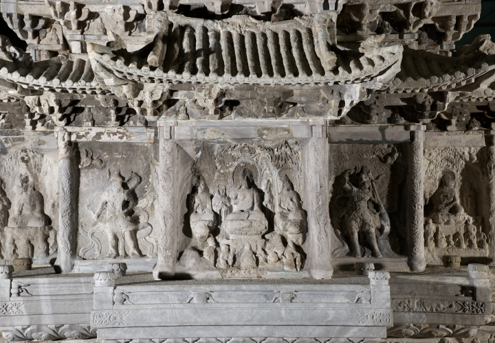 석탑 탑신에 새겨진 불회도(佛會圖)