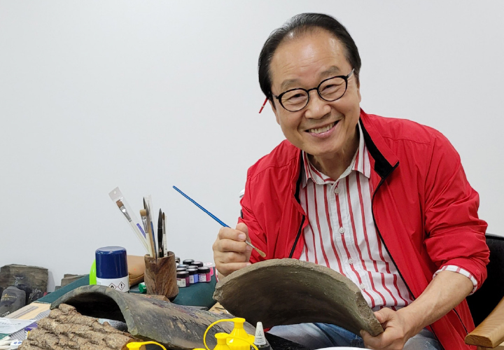 그는 충남 홍성을 거쳐 현재는 예산에 정착해 살고 있다. 서울에서 지방으로 내려와 산 지 9년이 넘었다. 집 근처에 예쁜 호수도 있고 작업에 필요한 기와도 구하기 쉬운 환경이라 삶의 만족도가 매우 높다고. “서울에 꼭 있을 필요가 있는 사람이라면 서울에 살아야 하겠지만 그럴 필요가 없는 저 같은 사람은 좀 빠져나와 줘야 되지 않나 하는 생각을 이전부터 늘 하고 살았어요. 이렇게 지방에서 흙과 더불어 여생을 보내는 것도 참 좋거든요. 코로나19 팬데믹이 유행일 때는 일찌감치 이렇게 내려와 있길 참 잘했다는 생각도 들었습니다.” 인위적인 것을 거부하며 자연의 순리대로 살고 싶다는 그의 말이 가진 속뜻은 작품에서도 잘 드러난다. 기와 또한 자연의 흙과 불을 통해 생겨난 산물이고, 세월의 흐름을 고스란히 반영하여 지금과 같은 모습이 된 것이다. 그는 고(古) 기와 아트에 대해 “세월의 흔적이 이미 절반 이상 밑그림을 그려놓은 상태에서 내가 나머지 절반을 덧그리는 것”이라고 표현했다. 또한 방송을 할 때도 자연 그대로의 사람 냄새가 나는 방송을 해야 한다는 신념으로 살아왔다고 말한다. “요즘 방송 트렌드는 저하고 정서적으로 좀 안 맞는 것 같아요. 비슷한 얼굴들이 여러 프로그램에 반복해서 나와 처음부터 끝까지 시시한 잡담을 계속 이어나가는데, 그런 걸 별로 좋아하지 않거든요. 또 방송은 국민들의 언어를 순화하고 계도하는 기능도 갖고 있어야 하는데, 요즘 예능 프로들을 보면 출연자들끼리 너무 절제가 없이 막말을 많이 하니까 한때 방송인으로 활발히 활동했던 한 사람으로서 유감스럽습니다.”