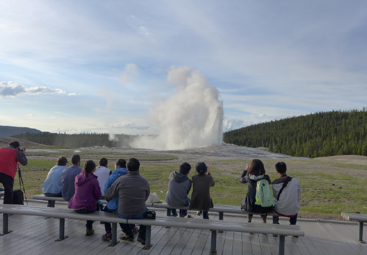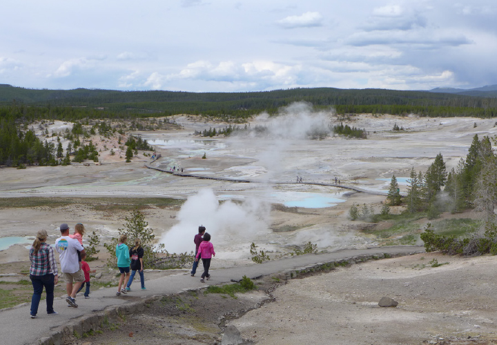 파운틴 페인트 팟과 미드웨이 간헐천은 온천수가 펄펄 끓는 머드 스폿으로 각각 한 시간 정도씩 트레킹하는 구간이다. 옐로우 스톤을 대표하는 올드 페이스풀은 사방 180도에 객석의자를 두었다. 단체 관람석이다. 뜨거운 온천수는 폭발하는 굉음과 함께 50m 높이까지, 거의 한 시간 주기로 5분씩 분출된다. 마지막 코스는 웨스트 썸 간헐천이다. 한 시간 정도 느긋한 산책길이다.