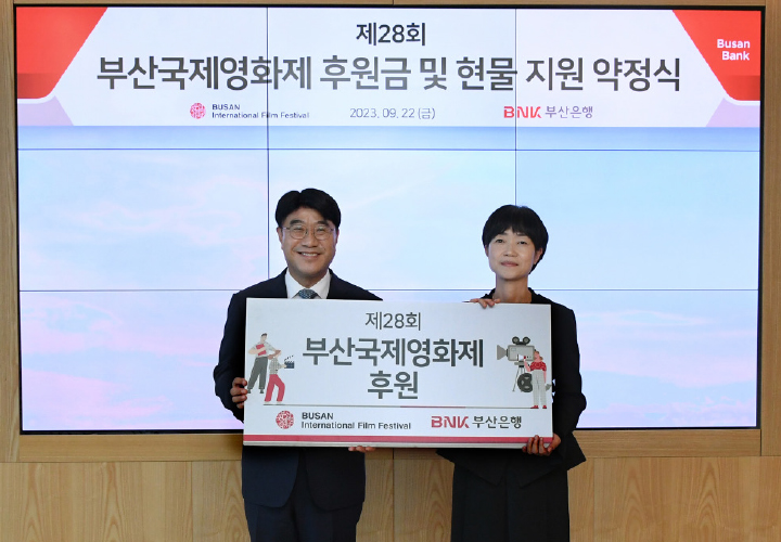 부산은행이 10월 4일 개막하는 ‘제28회 부산국제영화제’의 성공적인 개최를 위해 총 9억 4,000만 원을 후원했다. 부산은행은 9월 22일 본점에서 (사)부산국제영화제와 후원 약정식을 갖고 발전기금 5억 원과 4억 4,000만원 상당의 전산기기를 지원했다. 특히 1996년부터 올해까지 28년째 한 해도 빠지지 않고 영화제 후원을 이어오고 있으며 올해는 예년보다 후원 규모를 확대했다. 한편 ‘제28회 부산국제영화제’는 10월 4일부터 13일까지 10일간 개최되며, 올해는 총 269편의 영화가 상영될 예정이다. 폐막작 ‘영화의 황제’를 비롯해 갈라프레젠테이션 3편, 온스크린 6편은 BNK 부산은행 모바일뱅킹 라이프를 통해서도 예매할 수 있다.