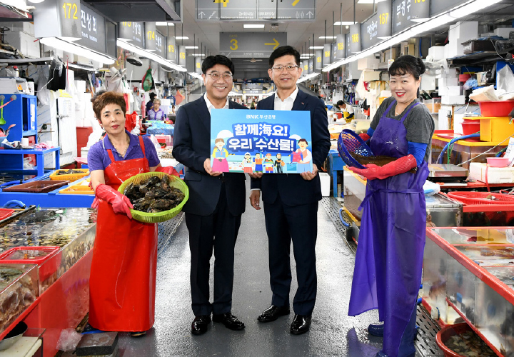 BNK금융그룹이 지역 전통시장과 수산업의 매력을 알리고 시민들의 방문 및 이용 활성화를 돕기 위해 임직원들과 함께 나섰다. BNK는 9월 15일 오전, 부산 자갈치시장을 방문해 빈대인 회장과 부산은행 방성빈 은행장 등 그룹 임직원 40여 명이 참석한 가운데 오찬행사를 진행했다. 이날 행사는 지역 경기침체와 국내외 이슈 등으로 최일선에서 어려움을 겪고 있는 부울경 지역 전통시장과 수산업의 활기를 되찾고, 시장 활성화를 통한 지역경제 활성화를 돕기 위해 추진됐다. 빈 회장과 임직원들은 미리 준비한 전통시장 상품권으로 시장물품을 구매하고 식사를 하며 지역 상인들에게 응원의 메시지를 전했다. 특히 BNK부산은행은 오찬행사 전, 10월 5일부터 8일까지 나흘간 열리는 ‘부산자갈치축제’의 성공적인 개최를 돕기 위해 (사)부산자갈치문화관광축제위원회에 후원금 3천만 원을 전달했다. BNK금융그룹은 울산과 창원에서도 오찬 행사를 진행해 지역 전통시장과 수산업 활성화를 지원할 계획이다.