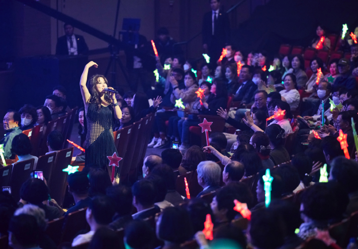 01. 야광봉을 흔들며 열띤 호응을 보낸 관객들 02. 입구에서 반갑게 고객을 맞이하는 방성빈 은행장 03. 크로스오버 음악의 진수를 보여준 양방언 04. 빼어난 가창력을 선보인 가수 알리
