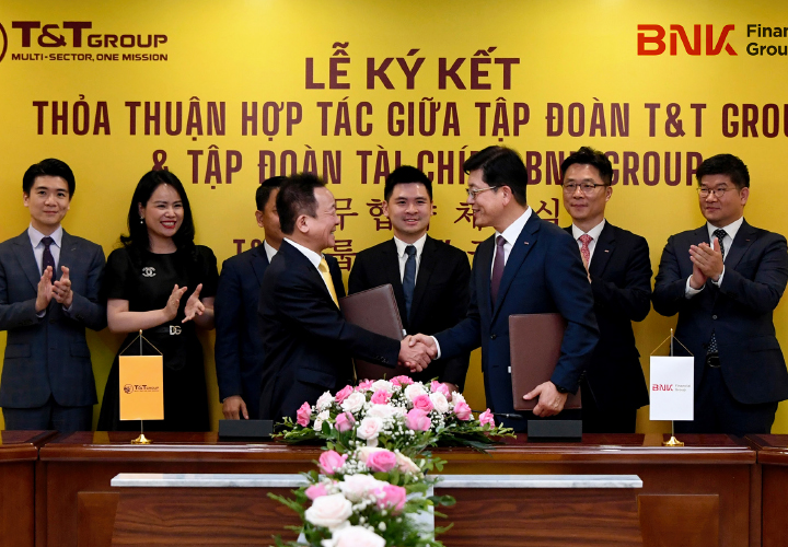 BNK금융그룹은 10월 16일 베트남 현지 하노이시 T&T그룹 본사에서 T&T그룹과 베트남 내 그룹 계열사 간 협업 사업 발굴 및 양 그룹의 인프라와 노하우를 공유하기 위한 업무협약을 체결했다.