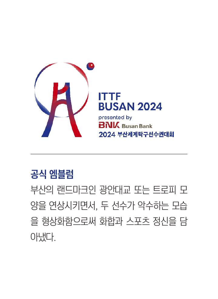 2024년 한국 탁구 도입 100주년을 맞아 부산에서 첫 세계탁구대회가 열리게 되었다. 단일 종목으로는 가장 많은 국가가 참여하는 메가 이벤트인 이 대회는 대한민국 탁구 역사에 길이 남을 기념비적인 대회가 될 것이다. 부산은행은 이 대회의 프리젠팅 파트너로 함께하며 큰 힘을 실어주고 있다.