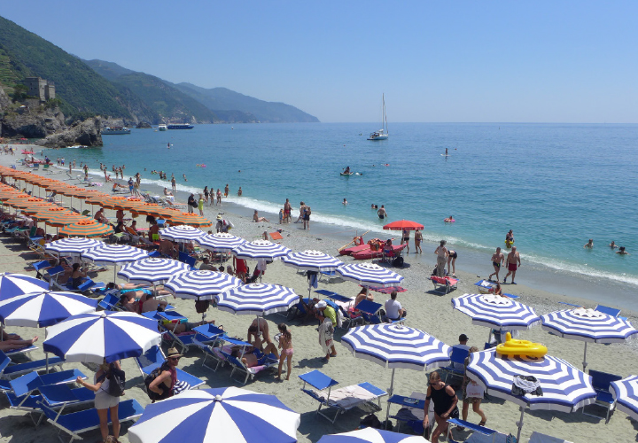 첫 번째 마을, 리오마조레(Riomaggiore) 다섯 번째 마을 몬테로소 알마레 기차역 바로 앞에 펼쳐진 해수욕장 전경